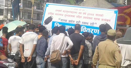 धुलोबाट बच्नको लागि विराट होटल व्यवसायी संघले विराटनगरको ट्राफिक चोकमा बुधबार एक कार्यक्रम आयोजना गरी दुई हजार पाँच सय माक्स निःशुल्क सर्वसाधरणलाई वितरण गरेको छ ।