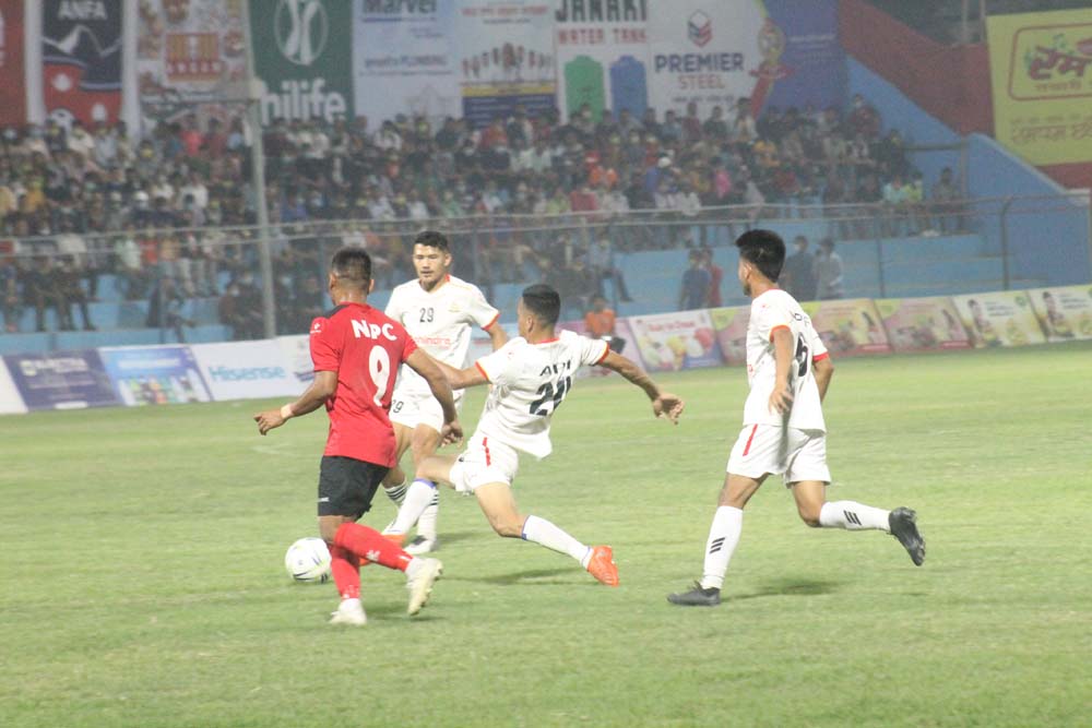 एक गोलले पछि गरेको पुलिसले दोस्रो हाफदेखि सुधारिएको खेल खेलेको थियो । दोस्रो हाफदेखि प्रहरीको एकपछि अर्को प्रहार एपीएफका गोलरक्षक राजु नगरकोटीले बाधक भए । पुलिसले दोस्रो आधा दर्जन गोल गर्ने अवसर खेर फाल्दा पराजित हुन पुग्यो । ६१ औ मिनेटमा डिबक्सभित्रबाट पुलिसका सुदिज सिक्राकारले गरेको प्रहार पहिलो बार माथिबाट बाहिरिन्दा बराबर गर्ने अवसर गुमायो । ७२ औं मिनेटमा प्रहरीका तेज तामाङले डिबक्स नजिकदेखि गरेको प्रहार एपीएफका गोल रक्षक राजु नगरकोटीले फेरि बाधक बने ।
