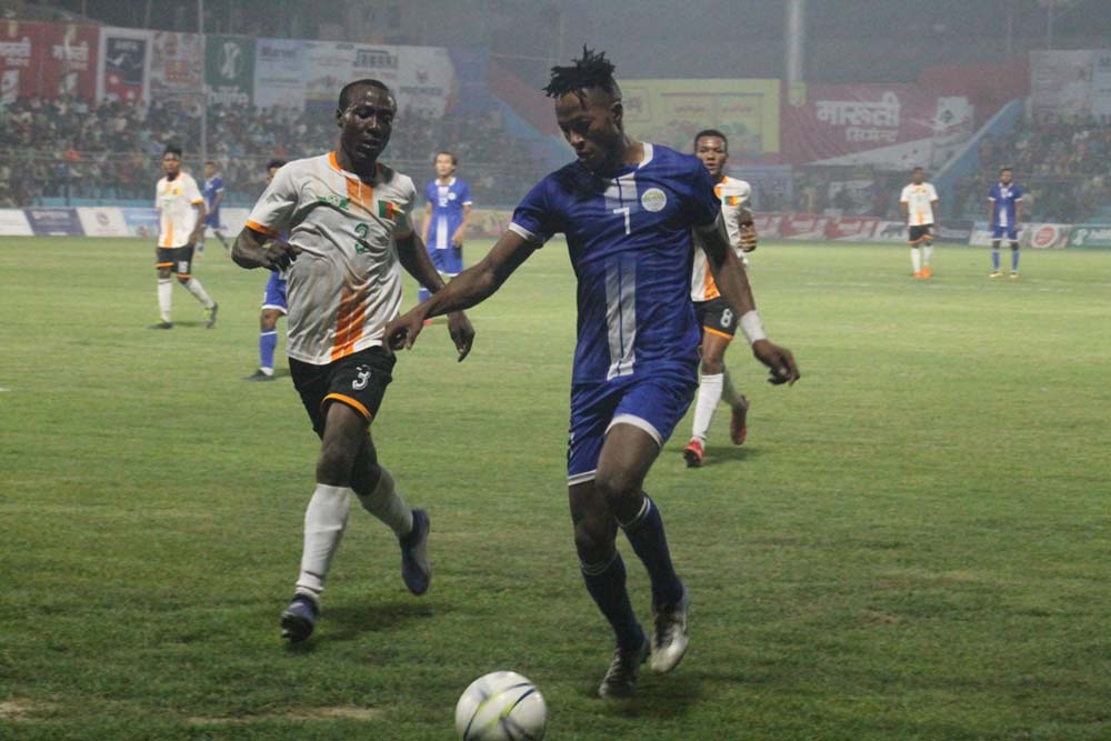 २३ औ मिनेटमा पौmनीले गरेको हेडिङलाई संकटाका गोलकिपर राजुबाबु थापाले पोललाईनमा उत्कृष्ट बचाए । संकटाका विष्णु सुनवारले खेलको २६ औं मिनेटमा डिबक्स भित्रदेखि गरेको प्रहार क्यामरुनको गोलरक्षक डिए स्यालभियोे बाधक बने । ३९ औं मिनेटमा संकटाका ओडे ग्लोरीले गरेको सशत्त प्रहार बाहिरिदा गोल हुन सकेन । खेलको ४५ औं मिनेटमा क्यामरुनका खेलाडी बसेकले ३० यार्डदेखि गरेको प्रहार बाहिरियो ।