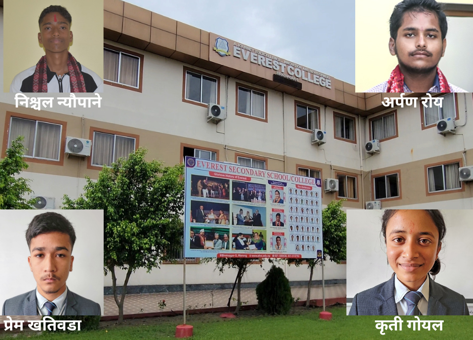 ति मध्ये चार जनाले आज भर्ना गरिसकेको एभरेष्ट कलेजले जनाएको छ । कलेजका अनुसार आज एभरेष्टबाट एसईई दिएका प्रेम खतिवडा र कृती गोयल यस्तै झापा गौरादह स्थित माउण्ट एभरेष्टका अर्पण राय र मोरङकै पथरी शनिश्चरे स्थित वाल्मीकि स्कुलका निश्चल न्यौपानेले एभरेष्टमा भर्ना गरेक हुन् । यस्तै आइतबार ४ जीपीए ल्याउने थप तीन जनाले भर्ना गर्ने एभरेष्ट कलेज प्रशासनले जानकारी दिएको छ ।