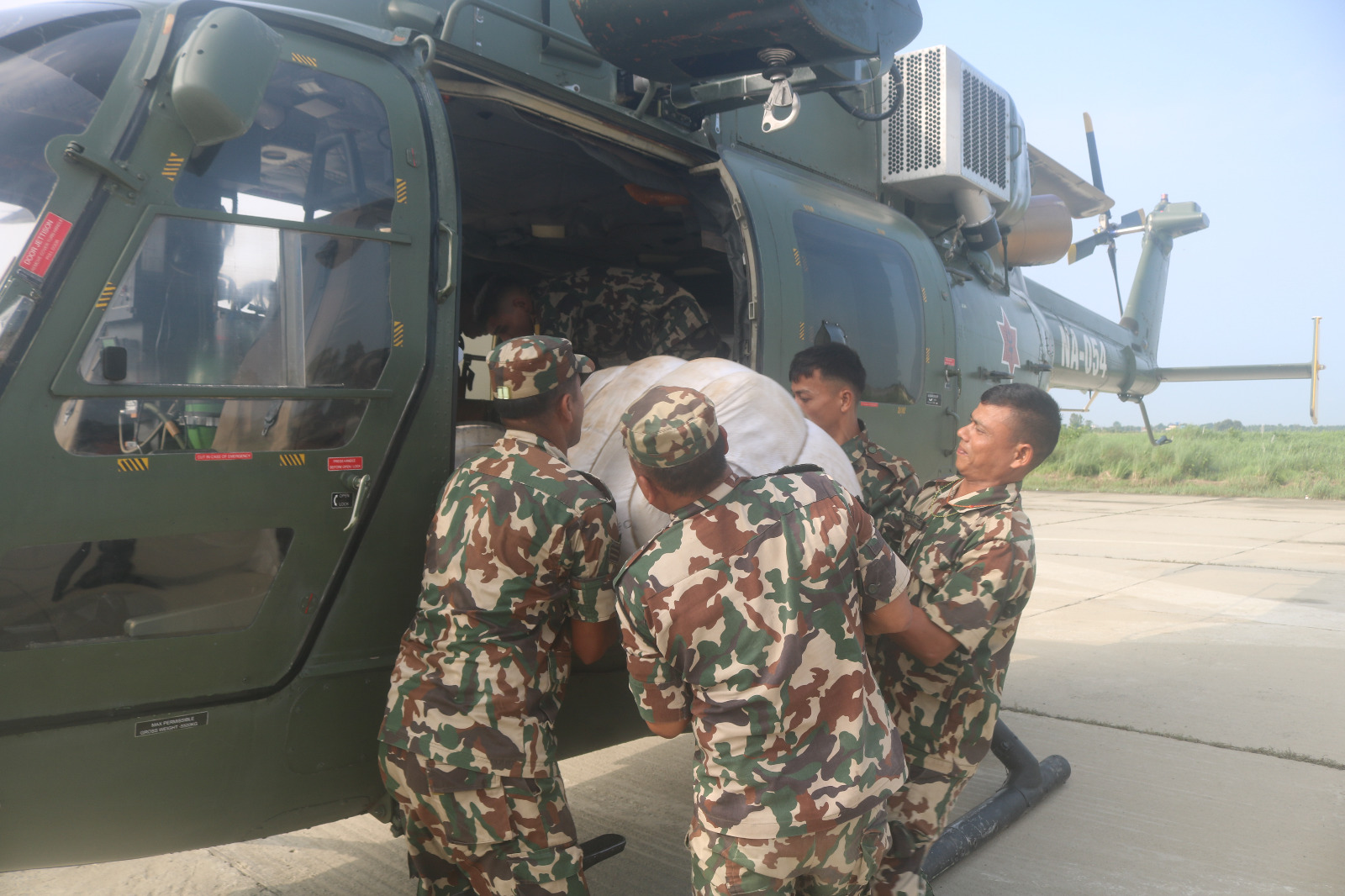 आज विहान हेलिकप्टर मार्फत राहत सामग्री र्याएको हो। कोशी प्रदेश सरकारका कोशी मुख्यमन्त्री हिम्मतकुमार कार्कीले राहतलाई तीव्र रुपमा वितरण गर्ने र मृतक परिवारलाई सहयोग गर्ने कामलाई प्रभावकारी रुपमा अगाडि बढाइ एको जानकारी दिए।कोशी प्रदेश आन्तरिक मामिला तथा कानुन मन्त्रालयले नेपाली सेनाको हेलिकोप्टर मार्फत राहत सामग्री पठाएको हो। मुख्यमन्त्रीले स्थलमार्गबाट राहत पठाउन सकिने अवस्था नभएपछि तत्कालका लागि हेलिकोप्टर मार्फत पठाईएको जानकारी दिए।