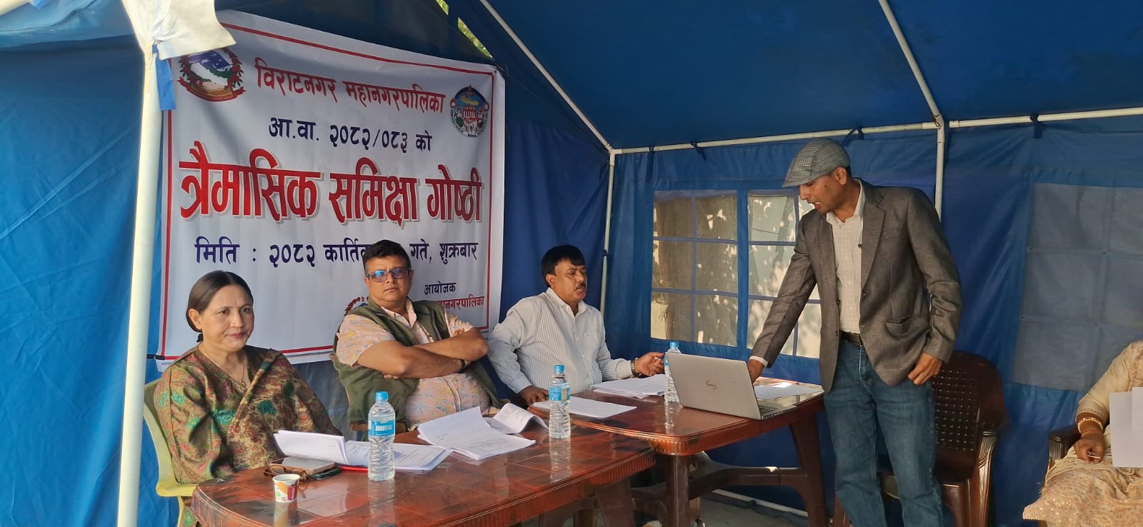 जेनजी आन्दोलनका कारण भवनमा क्षति पुगेपछि महानगरले टेन्टभित्रै समीक्षा गोष्ठी सञ्चालन गरेको हो । प्रमुख नागेश कोइराला, उपमेयर शिल्पा निराला कार्की, प्रमुख प्रशासकीय अधिकृत योगेन्द्र दुलालको उपस्थितिमा भएको गोष्ठीमा चालु आर्थिक वर्षको तीन महिनाको अवधिमा महानगरबाट भएका कार्यप्रगति प्रस्तुत गरिएको थियो ।
