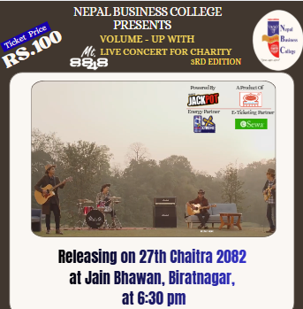 Mt.8848 Band का साथै The Shubham Band र Pintu Sanyal समेतको उक्त सांगीतिक कार्यक्रममा प्रस्तुति रहने छ ! विराटनगर-११ स्तिथ नेपाल बिजनेस कलेजमा बि.बि.ए. सातौ सेमेस्टरमा अध्ययनरत विधार्थीहरुको आयोजनमा हुने उक्त कार्यक्रम पढ़ाई संग सम्बन्धीत real life experience हुने भएको छ !