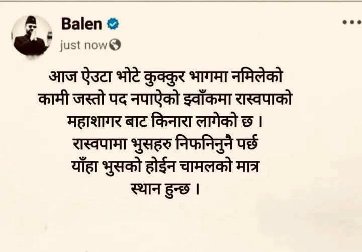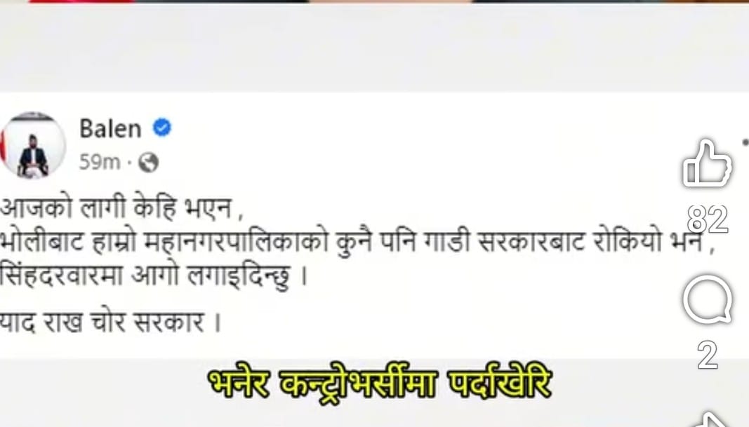 आज प्रधानमन्त्री बालेन्द्र साहको विरुद्धमा लेख्ने वा भिडियो बनाउनेलाई कारबाही भयो। के यही मापदण्ड अरू नेताहरूलाई अस्लील शब्द, गाली गलौज गर्ने र अश्लिल भिडियो बनाउनेहरूका लागि पनि लागू हुन्छरु के केपी शर्मा ओली,पुष्पकमल दाहाल,माधव कुमार नेपाल,झलनाथ खनाल, शेरबहादुर देउवा लगायत शीर्ष नेताहरुका बारेमा दैनिक लेखिने ती तिखा शब्दहरू, कटाक्ष,अमर्यादित भिडियोहरू बनाउनेलाई पनि उस्तै कारबाही हुन्छ त ?
