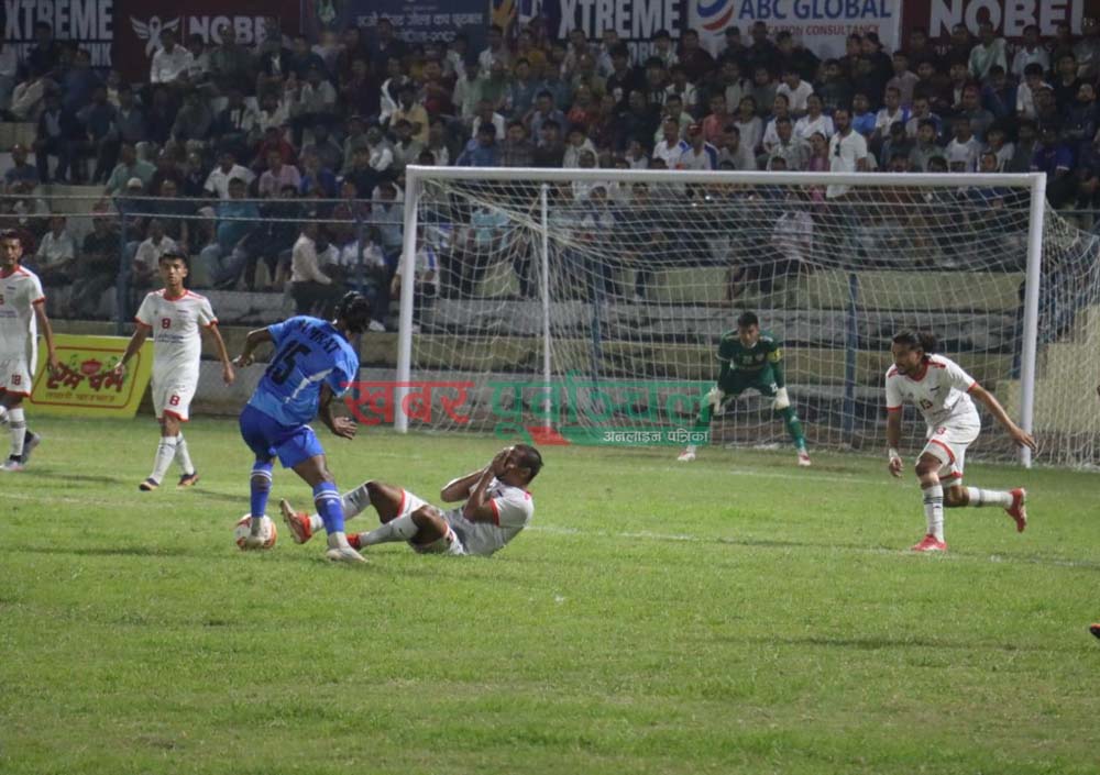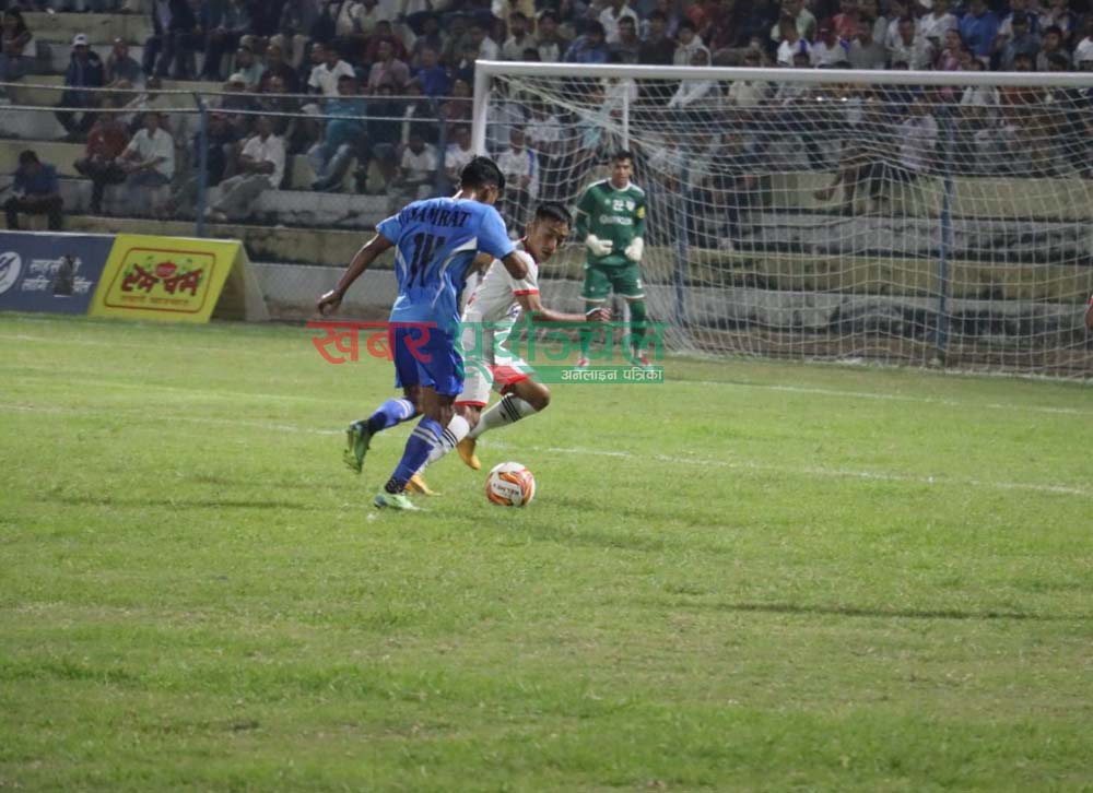 खेलको ५० औँ मिनेटमा सौरभ तामाङले गोल गर्दै घरेलु टोलीलाई सुरुवाती अग्रता दिलाएका थिए । निर्धारित ९० मिनेटको खेल सकिएपछि थपिएको ७ मिनेटको इन्जुरी समयमा सम्राटले थप दुई गोल गर्दै जित सुनिश्चित ग¥यो । इन्जुरी समयको चौथो मिनेटमा आदित्य शाक्यले गोल गर्दै टोलीको अग्रता दोब्बर बनाए । त्यसको दुई मिनेट बित्न नपाउँदै इन्जुरी समयको छैटौँ मिनेटमा विवेक राईले गोल गरेपछि सम्राट ३–० ले विजयी भयो ।